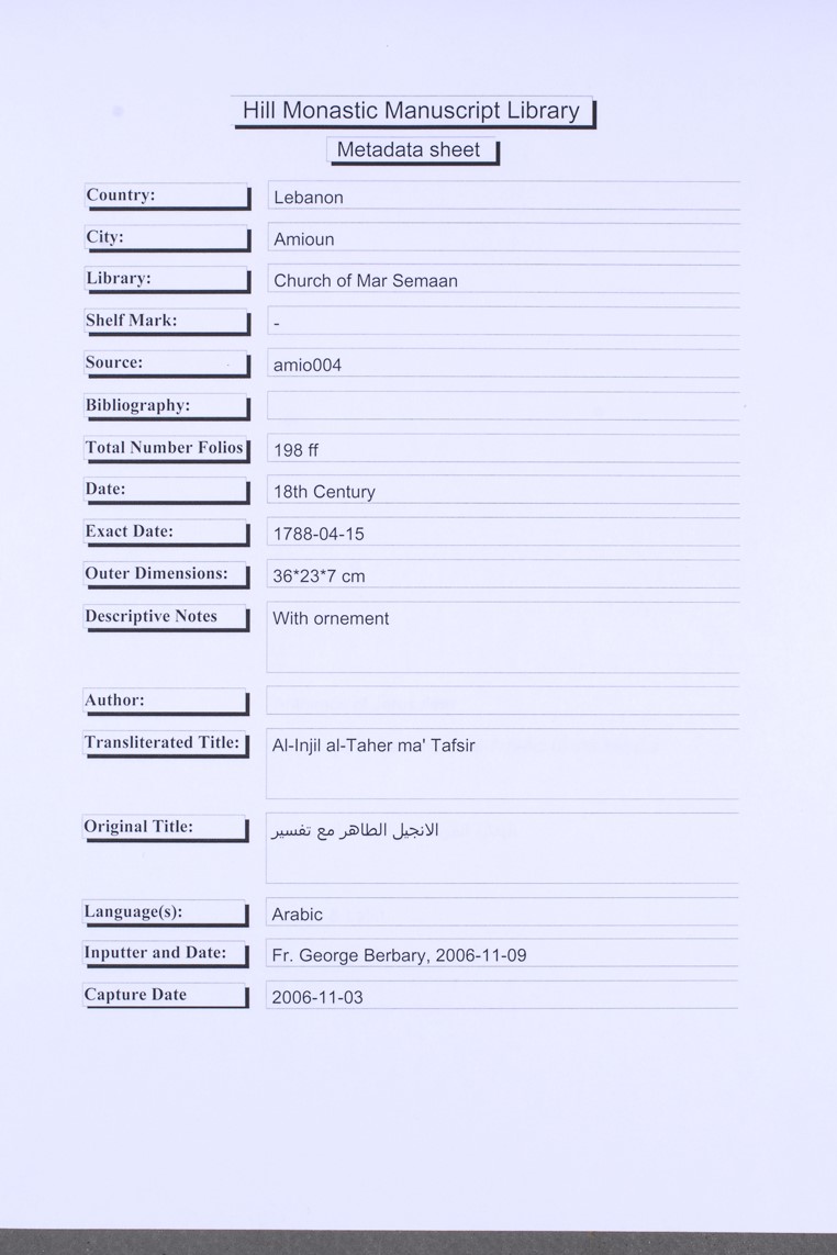 Amion04: كتاب الانجيل الطاهر والمصباح المنير الزاهر